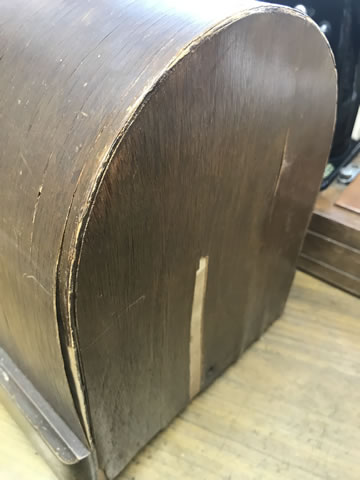 木製のカバーに傷みがありましたがミシン本体への水による錆などは無く、今後も調子よく使えるかと思います。