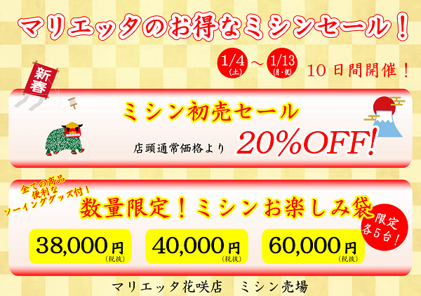 - マリエッタ花咲 ミシン初売セール! [店舗スタッフ花咲店のブログ]