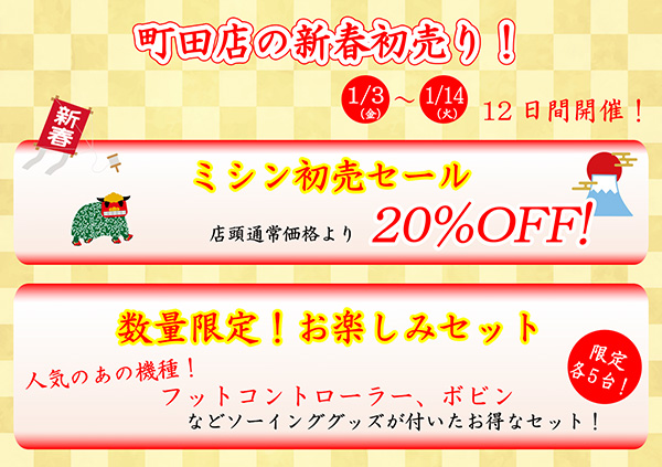ミシンお楽しみセットもご用意した新春セールを開催します!