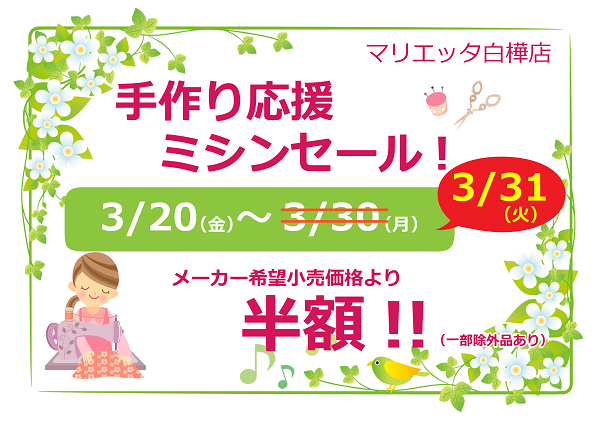 ★マリエッタ白樺店 手作り応援ミシンセール開催中です★