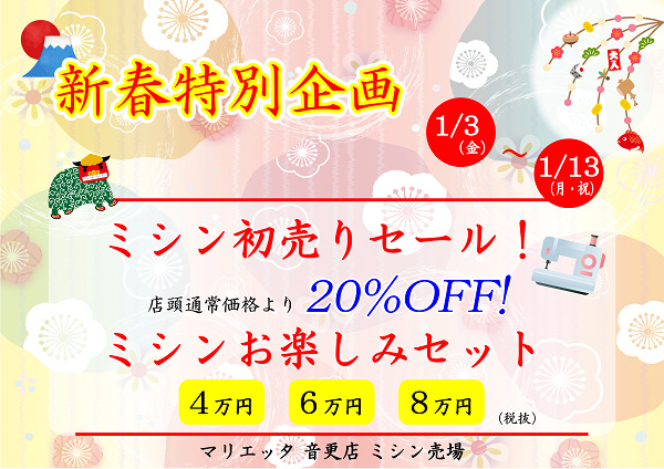 ミシンお楽しみセットもご用意した新春セールを開催します!