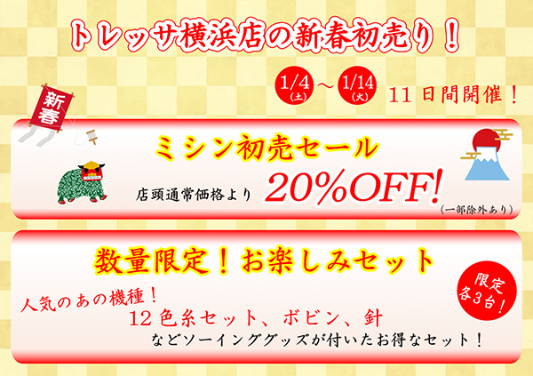 ミシンお楽しみセットもご用意した新春セールを開催します!