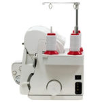これまで上下ルーパー1本づつ通していた、衣縫人、糸取物語のエアスルーレバーとは異なり、ジェットエアボタンで2本同時にルーパー糸を通します。