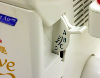 ABCDの4種類の切り替えレバーを回すだけで簡単に縫い方を変えることができます。