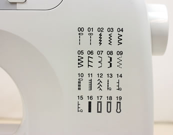 ゆっくりぬい、簡単下糸巻き、お好み調節、自動ボタン穴かがり、針停止位置設定、一針ぬい、3ステップ糸通し、LEDデュアルライト、液晶ディスプレイ、らくらく模様選択、エラーメッセージ、ドロップフィード、6枚送り歯、押え固定ピン、下糸クイック、ゆっくりスタート