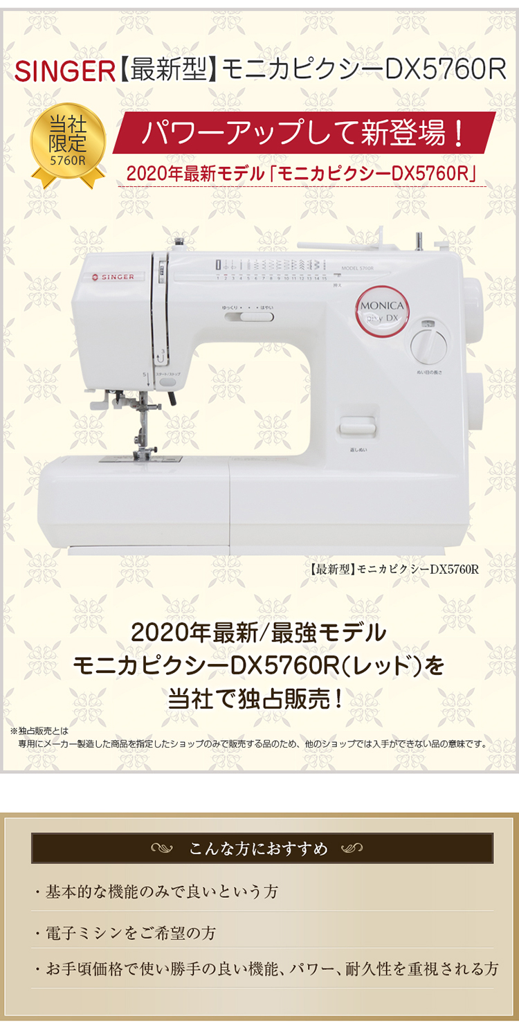 トップページ > 商品 > お勧め商品 > はじめてさんにおすすめ > モニカピクシー DX 5760R シンガーミシン