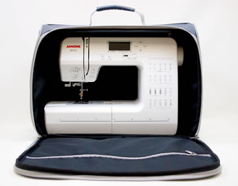 軽くて丈夫なナイロン製収納ケースは、ミシン本体だけでなく、ワイドテーブル、フットコントローラー、取扱説明書、各付属品などをすべて収納できます。