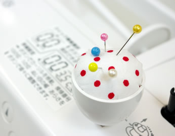 JP310はミシン本体に取り付け可能な特製オリジナルピンクッションが付属されていますので、ソーイング中に他のピンクッションを用意することがなく、予想以上に便利なアイテムです。