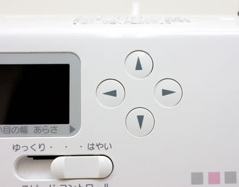 模様選択、縫い目の幅、縫い目のあらさは、十字に配列された4つのボタンで簡単に操作ができます。