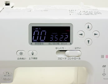 液晶画面の右下に、速度調節つまみがあり、縫い速度を無段階で調節ができます。
