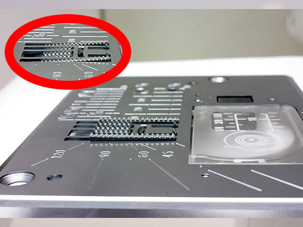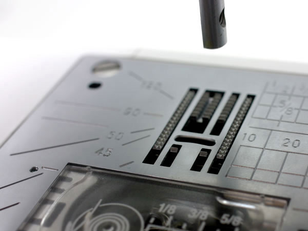 プラスチック製と比べ板に、ゆがみが起き辛く安定した布送りになり、縫い比べると感触が違いますので、以前プラスチック製針板の、軽いミシンを使用していた方などは、縫いやすさを実感されるかと思います。