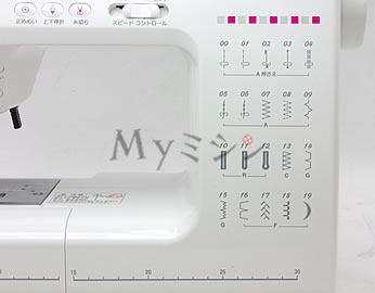 模様数は直線縫い、ジグザグ縫い、伸縮縫い、ボタンホール3種類など20種類を内蔵しており、実用縫いに必要な模様を中心にまとめられています。