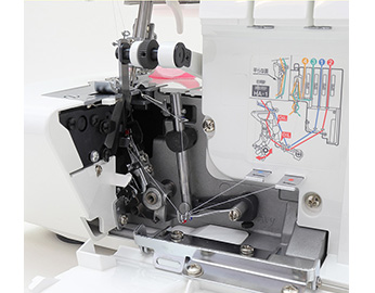 すぐに試し縫いしてたら、糸かけ案内上に上げるの忘れて糸が抑え調節つまみに絡まってしまいました。糸かけは、難しくもなくすぐに再スタート。私的には音はうるさくないです。左側のカバーが開くので、糸くず取りのお掃除するのが楽です。糸かけ、糸調子できる方ならとっても良いロックミシンだと思います。買ってよかったです。