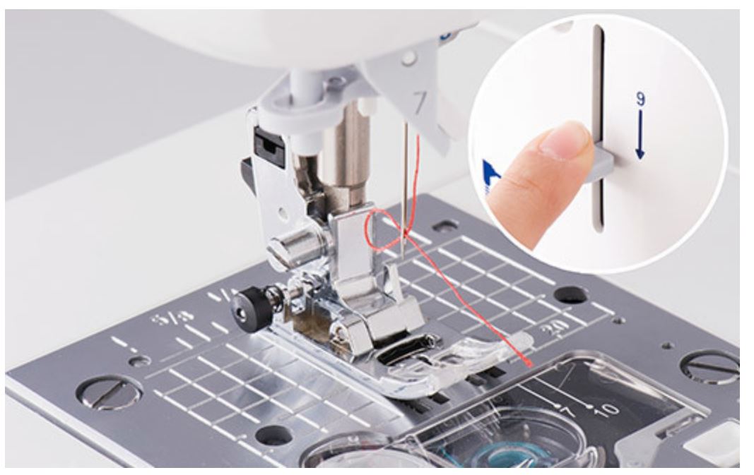レバー操作だけで片手で素早く、簡単に針糸通しが出来ます。
