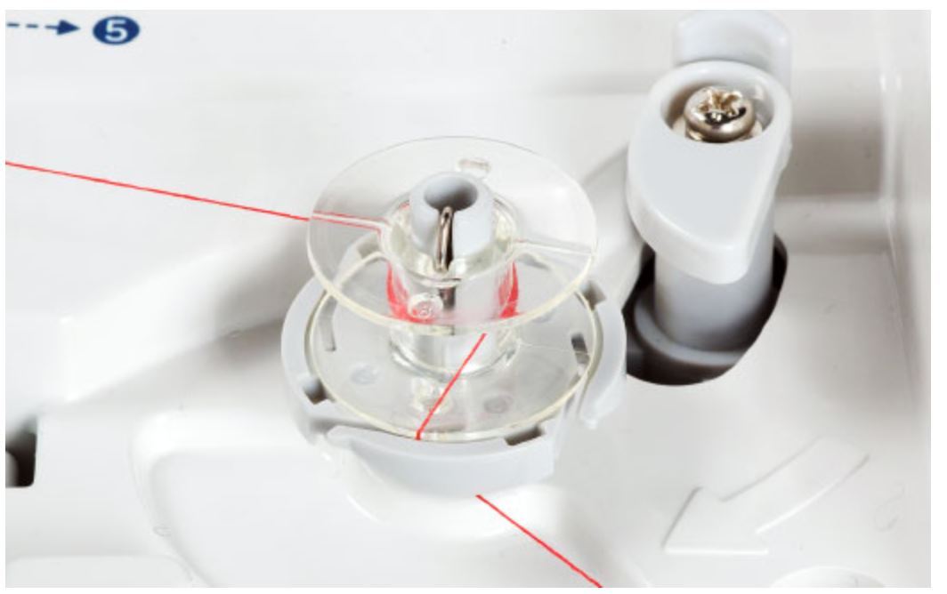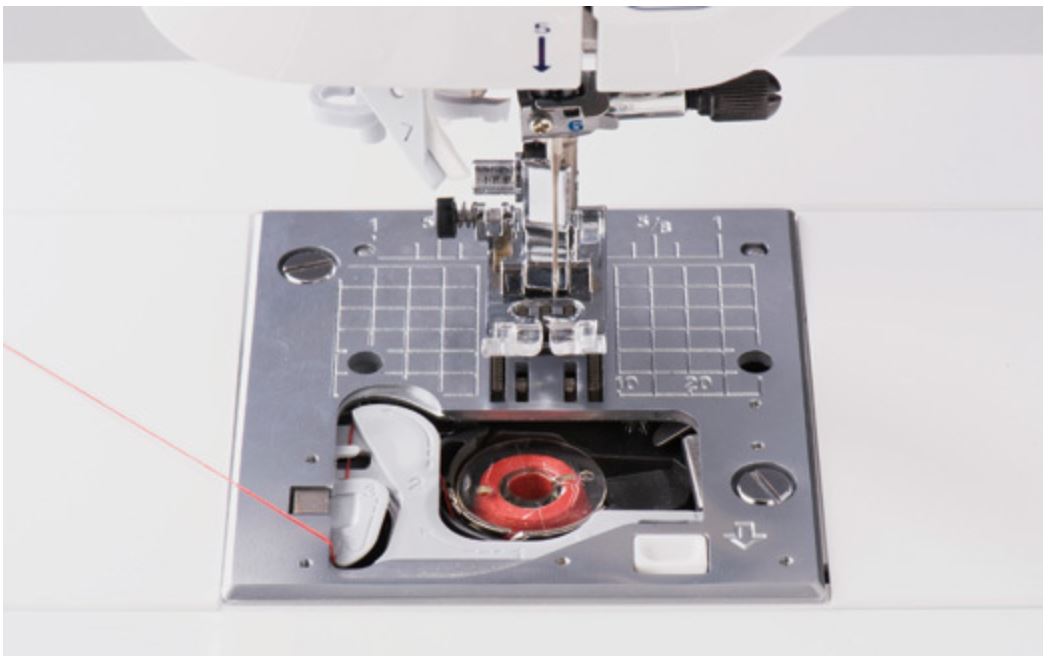 ガイドに沿って糸かけするだけで下糸を引き出す手間を省きました。
