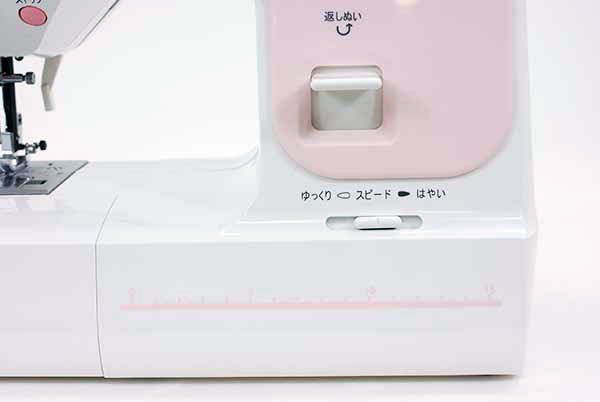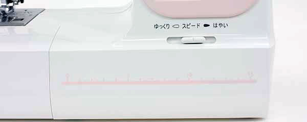 今回、実用性にも配慮したデザインのひとつとして、ミシン本体に、15cmのスケール(定規)がプリントされていますので、長さを測るのに便利です。