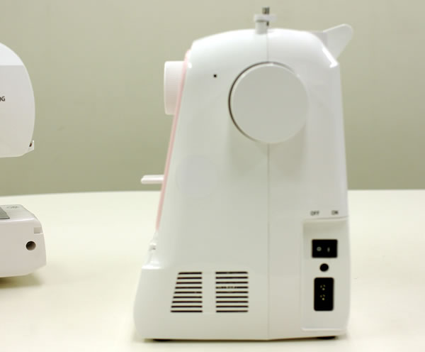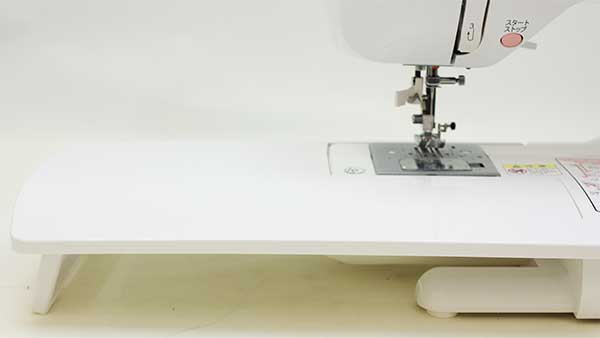 これにより安定したソーイングを実現でき、さらに前述のとおり、標準装備のワイドテーブルにより、ソーイングスペースも広いですので、従来のコンパクトミシンの枠を超えた、ミシンフォルムの新しい形として、デザインされています。