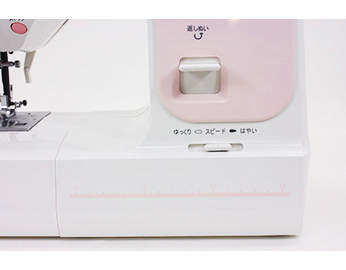 レバーを左右に動かすことで無段階にスピード調節できますので、自分に合った縫いスピードに細かく合わせることが可能です。また、スタート・ストップ、返し縫いもボタン(レバーひとつですので、操作方法がいたってシンプル。初心者からご年配の方まで、使いやすい仕様になっています。