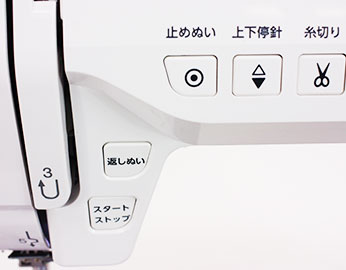 縫い終わり時に糸切ボタンを押すだけで、上下の糸を切ってくれますので、余分な糸が少なく、ミシンの周りが、糸で散らかることもありません。