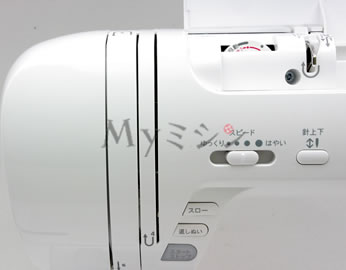 運転中にワンタッチスローボタンを押すことにより縫い速度を最低速度にすることができる機能です。
