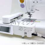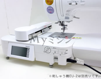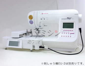 趣味、用途によっては、刺しゅうでの文字縫いを希望されるお客様には、今までは他メーカーの機種をご提案していましたが、今回、マイナーチェンジされたニューモナミヌウシリーズは、専用刺しゅう機の取り付けが可能となりましたので、縫う素材、用途などによって文字縫いにするか、刺しゅう文字縫いにするかを選択できますので、他目的にご使用できます。
