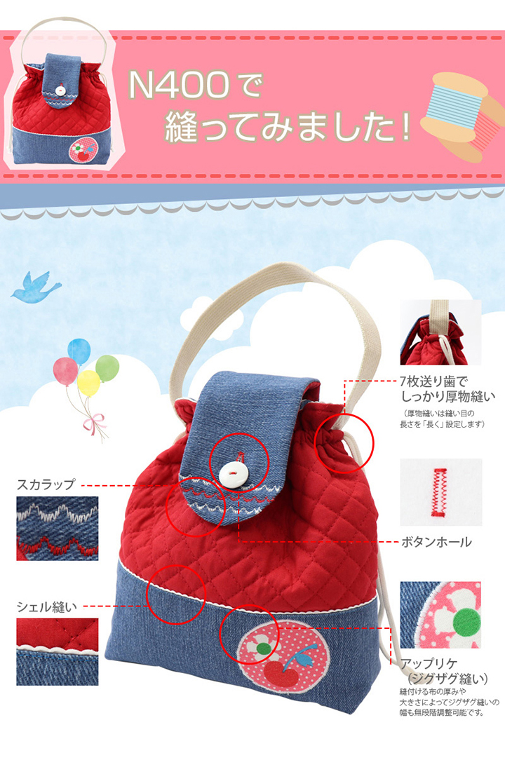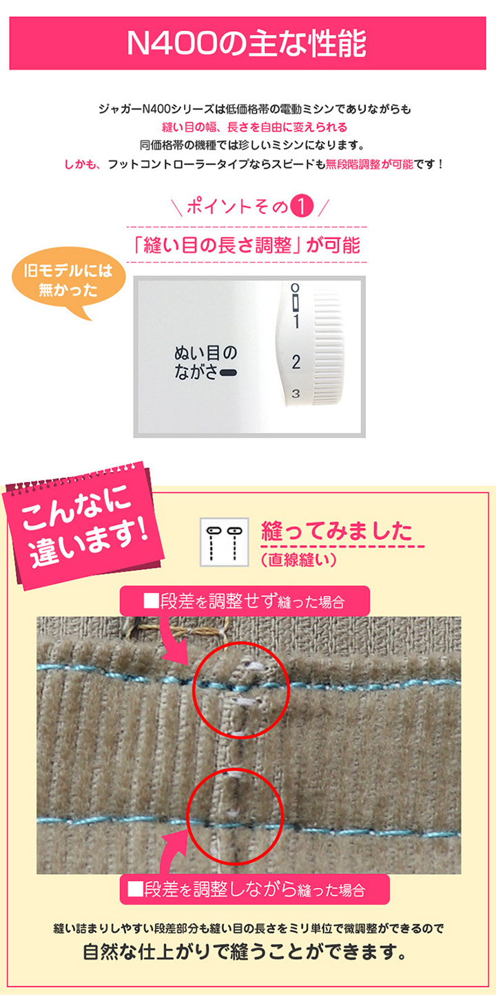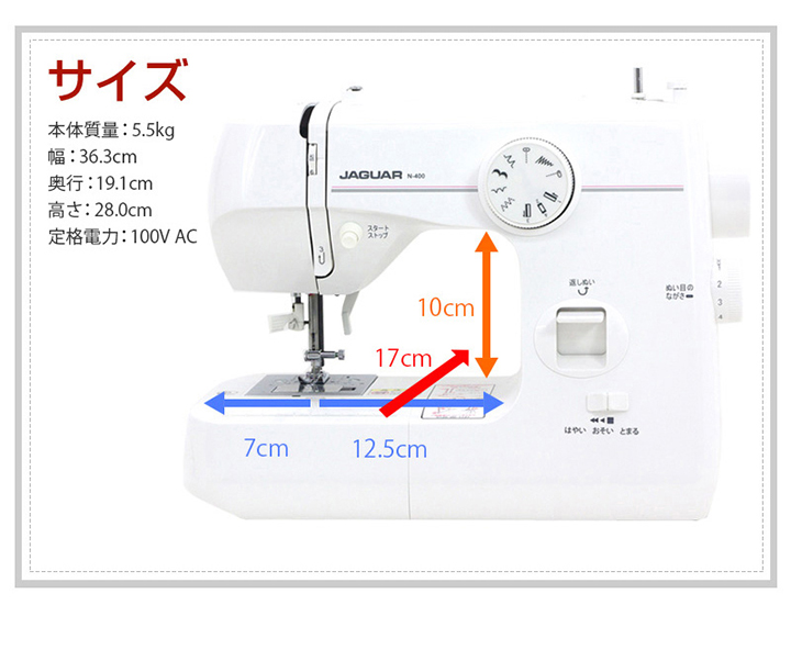 トップページ > 商品 > お勧め商品 > はじめてさんにおすすめ > 特別付属付き!ボタン式 N400C(スクエア柄) ジャガー 電動ミシン