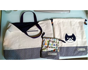 トップページ > ミシンのレシピ > うちの猫をモデルにしたアップリケをつけた入園グッズ!
