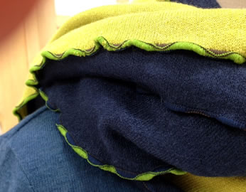 ウール生地の大判ストールの縁取りにウェーブを使用しています。