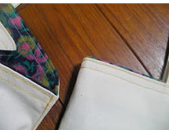 外からちらっと見えるように1ミリくらい上げてうち側の布がお気に入りだから中袋が暴れないように、底部分にハトメを!