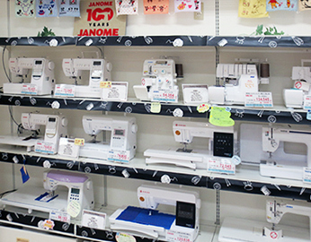 当店では、実店舗専用機種を中心に展示、お取り扱いをしておりますので、当サイト「マイミシン」で掲載されているミシンは展示されておりませんので、予めご了承くださいませ。